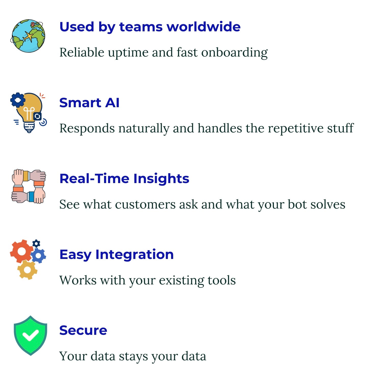 Instantly. Your customers get answers in seconds instead of wasting hours.